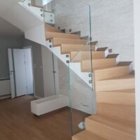 - Balustrady na rotulach – szkło jest montowane na rotulach systemowych ze stali nierdzewnej do policzków schodów (z poręczą lub bez poręczy).